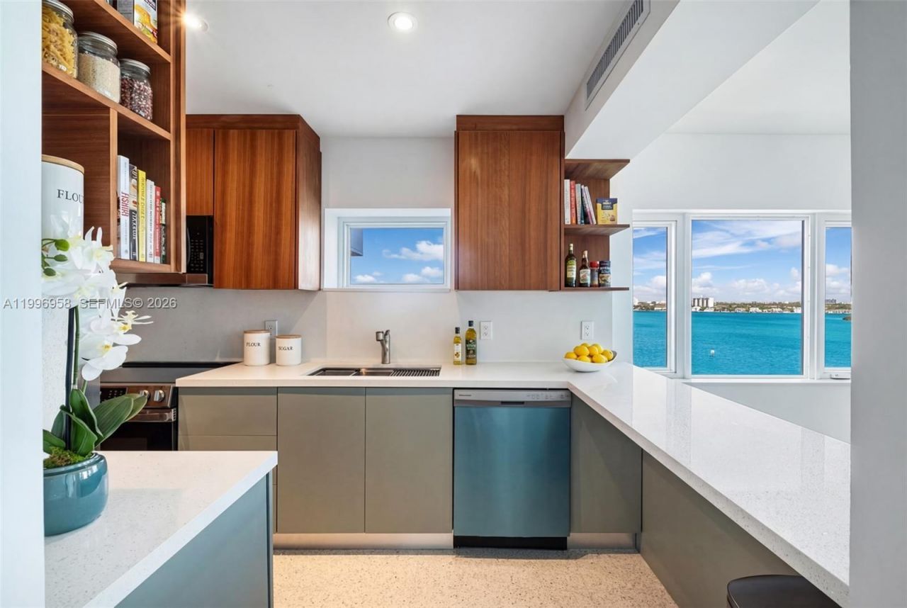 A true hidden gem in Bay Harbor Islands! From sunrise to sunset, enjoy beautiful and serene water views on the inviting terrace of this fully renovated 2BR/2BA corner residence, ideally located in a boutique building. Priced at $495,000, this is your entry into Miamis waterfront lifestyle. Situated on the 9th floor, the unit offers a peaceful atmosphere, abundant natural light, and an open-concept layout with seamless indoor-outdoor living. It has just been completely remodeled with impact windows and modern, timeless finishes throughout. This well-maintained co-op building offers a quiet, stable residential setting, ideal for primary residents or seasonal owners. Reasonable maintenance fees: $799/month. Amenities include a heated pool and a large waterfront dock. Prime location just blocks from Ruth K. Broad A-rated K-8 school, Bal Harbour beaches, scenic boardwalk, Bal Harbour Shops, and a variety of upscale dining options. Additional features include 2 parking spaces. Please note: no pets and no rentals permitted.