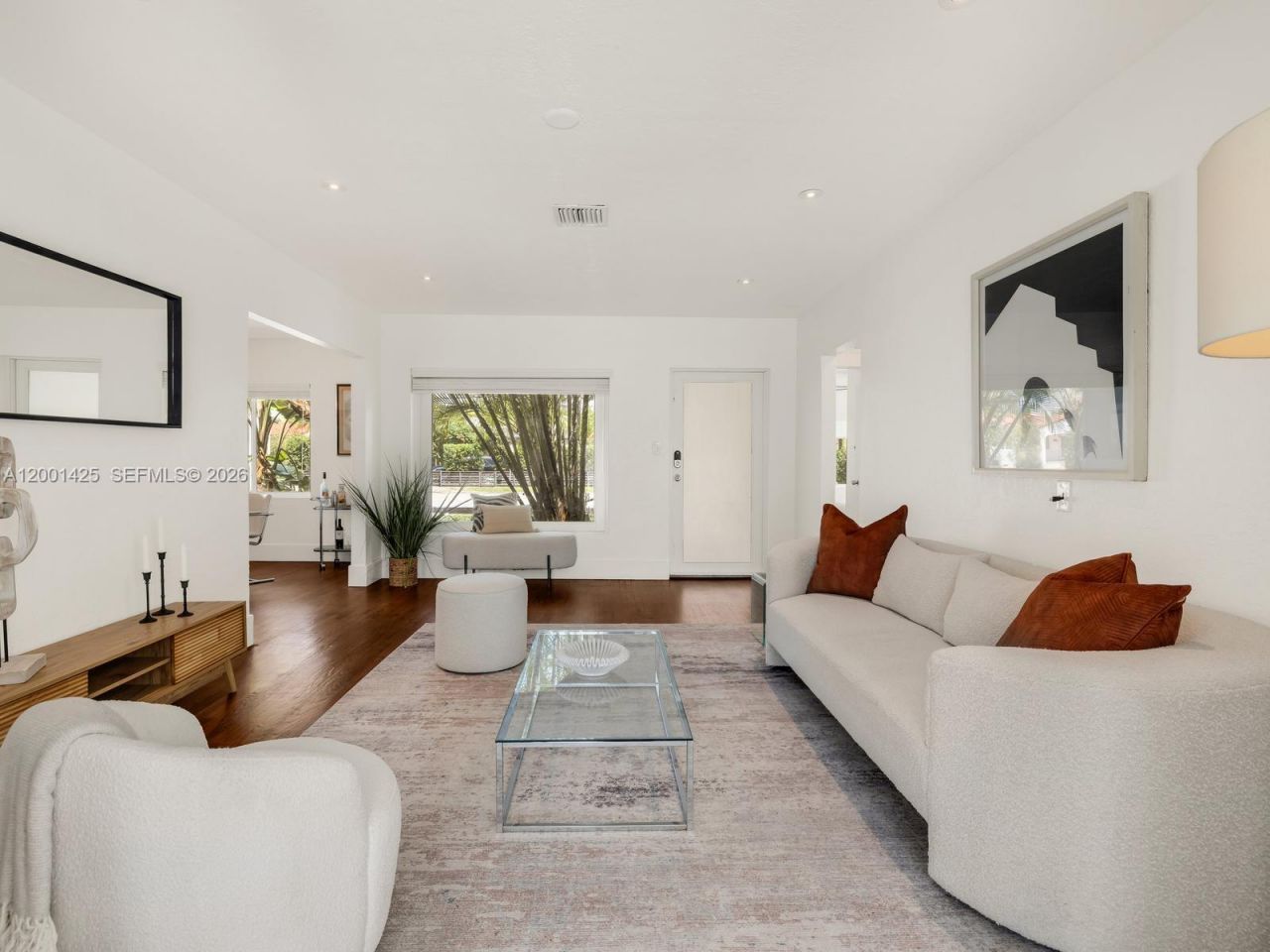 A rare opportunity to own in Miami Shores under $800K?without sacrificing condition or charm. Welcome to The Seagrape Charmer! This turnkey 3BD/2BA home offers 1,433 SF on a 7,725 SF lot, featuring a new roof (2025), all impact windows/doors, and a new septic system. Warm wood floors run throughout, leading to a bright living room with a picture window overlooking the front garden. The open kitchen is updated with quartz counters and stainless appliances, flowing seamlessly into dining. Two spacious guest rooms sit on one side, while the primary suite is tucked privately in the rear with a walk-in closet and en-suite bath. A sunny Florida room with charming encaustic tile floors and wraparound windows adds flexible living space. Outside, enjoy a peaceful, fully-fenced backyard with mango tree, patio, and room for a pool. One-car garage + laundry room. Non-flood zone. Positioned near Downtown Miami Shores with conveniently quick access to I-95 via 103rd Street. A tremendous value in the Village Beautiful!